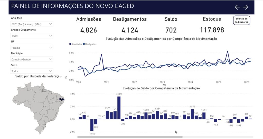 O Ministério do Trabalho e Emprego divulgou ontem (29) mais uma atualização do Cadastro Geral de Empregados e Desempregados (Caged). No documento, a confirmação de mais 702 novos empregos formais gerados em Campina Grande no mês de março.
