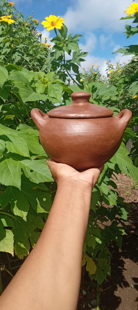”É um trabalho que tem que ter paciência. Uma peça pode ser feita em até cinco minutos. Depois de pronta, a peça vai para um cantinho, ainda molinha, para depois receber o acabamento. Após essa etapa, é preciso esperar mais um dia para fazer o polimento. Depois a panela vai para a secagem, manuseamos cada peça de barro de seis a oito vezes até que ela esteja pronta para ser entregue ao cliente. Uma peça leva, em média, cinco dias para ficar pronta. A queima, nós realizamos uma vez por mês” descreveu.